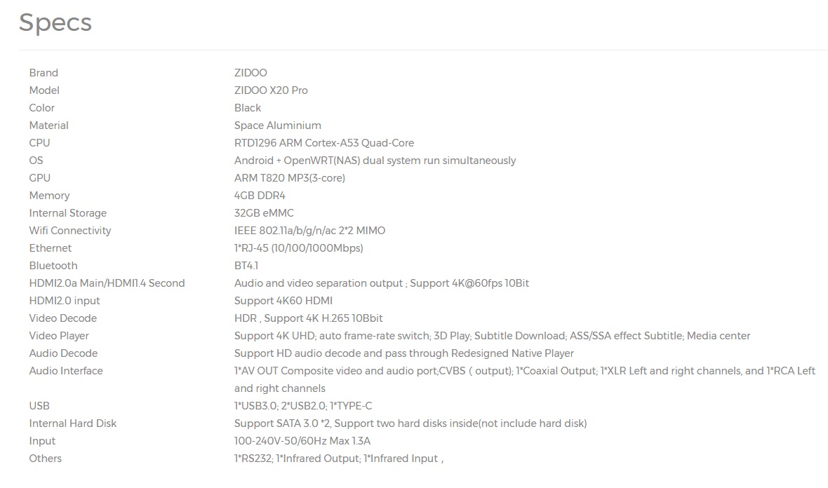 - CPU: HiSilicon Hi3798C V200 Quad Core 64bit Cortex A53